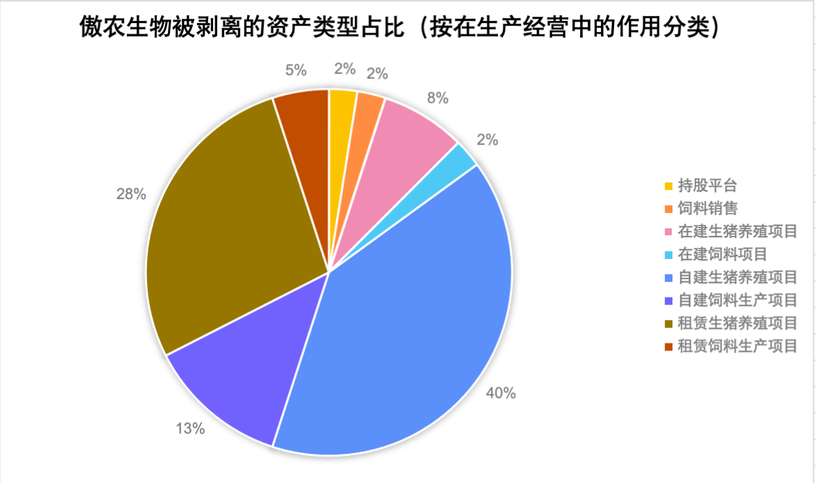傲农生物拟剥离资产类型占比。图片来源:时代周报 制图