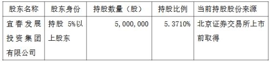 截至公告日,宜春发展投资集团有限公司持股数量5,000,000股,持股比例5.3710%。