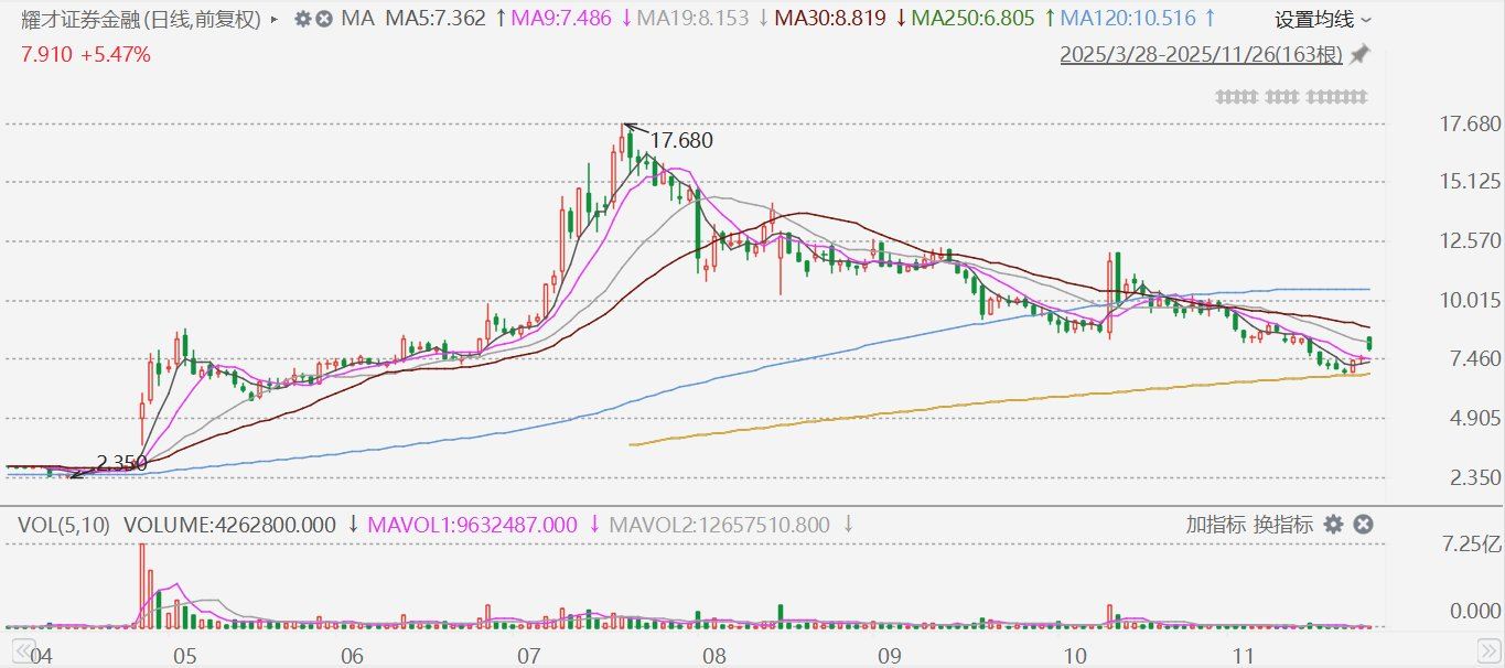 此前一度因蚂蚁延期收购大跌的耀才证券金融,今日因延期收购时间确定上涨。盘初一度大涨12%报8.4港元,目前涨幅收窄至6%以内。