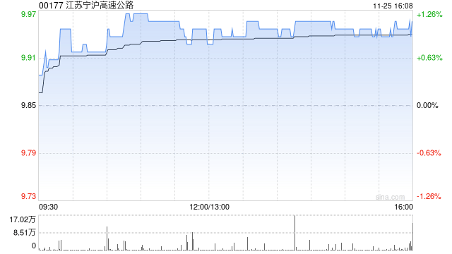 香港联交所最新数据显示,11月24日,江苏交通控股有限公司增持江苏宁沪高速公路(00177)1058.8万股,每股作价9.8947港元,总金额约为1.05亿港元。增持后最新持股数目为4902.4万股,XM官方网址持股比例为4.01%。