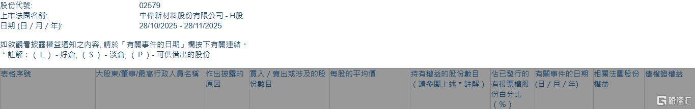 格隆汇11月28日丨根据联交所最新权益披露资料显示,2025年11月24日,中伟新材(02579.HK)获JPMorgan Chase & Co.以每股均价28.4881港元增持好仓86.7万股,涉资XM官方网址约2469.92万港元。