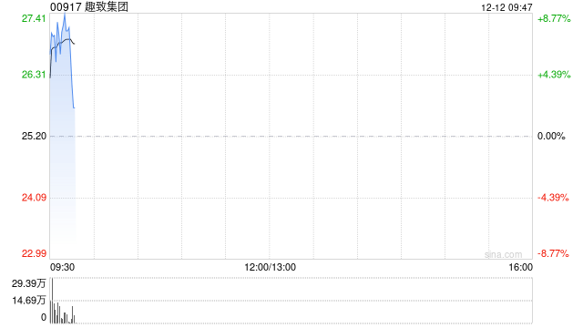 趣致集团(00917)盘中涨超7%,截至发稿,股价上涨5.71%,现报26.64港元,成交额3609.96万港元。