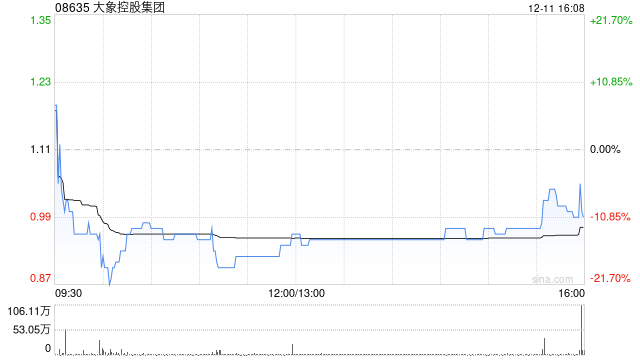 香港联交所最新资料显示,12月10日,董事会主席狄小光增持大象控股集团(08635)94.8万股,每股作价1.03港元,总金额约为97.64万港元。增持后最新持股数目约为1.49亿股,最新持股比例为3XM官方网址0.97%。
