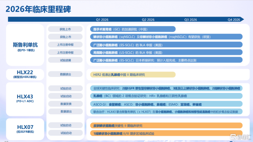 HLX22(新表位HER2单抗):凭借其新表位机制,有望重新定义胃XM官方网址癌一线治疗标准,其国际多中心III期临床正在全球稳步推进。预计2026年上半年将完成在中国开展的HER2低表达乳腺癌II期临床研究数据读出。