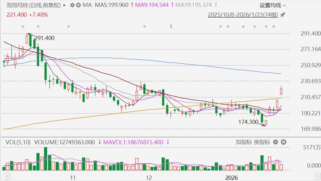 憧憬新IP热度上升,泡泡玛特(9992.HK)拉升大涨超9%,报225港元,股价创2025年12月初以来新高。