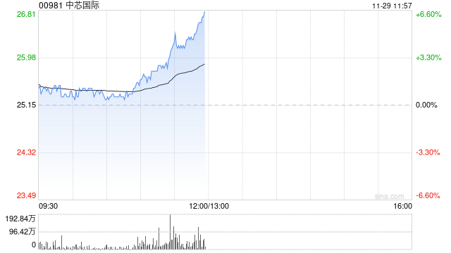半导体股早盘拉升走高,中芯国际(00981)上涨4.57%,报26.30港元;上海复旦(01385)上涨4.05%,报15.42港元;华虹半导体(01347)上涨4.24%,报20.90港元;宏光半导体(06908)上涨5.17%,报0.61港元。