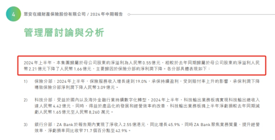 除了保险分部,众安在线的科技分部和银行分部2024上半年虽呈现大额减亏的态势,但保险分部作为公司的核心业务,其净利润的下降对整体业绩影响巨大,导致众安在线2024上半年归母净利润大幅下降,公司不得不为业务发展考虑,董事会决议不宣派截至2024年6月30日止6个月的中期股息。