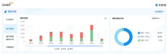 天眼查信息显示,众安在线近几年来涉诉事项快速增加,从2022年的不到2000条案件到2023年超过2300条,再到2024年全年超过4000条案件。